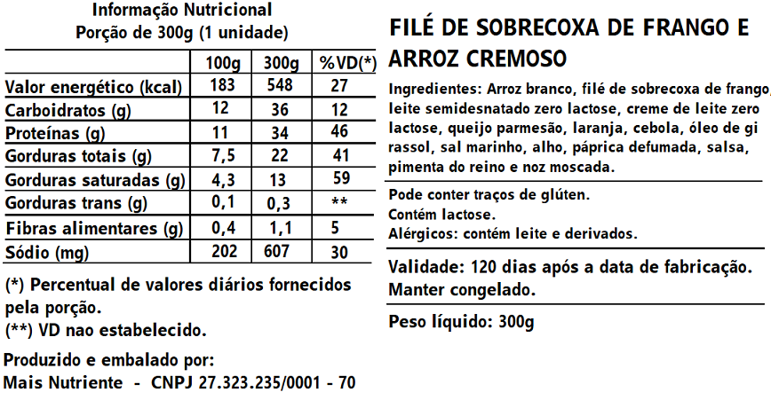 120g filé de sobrecoxa de frango + 180g arroz cremoso
